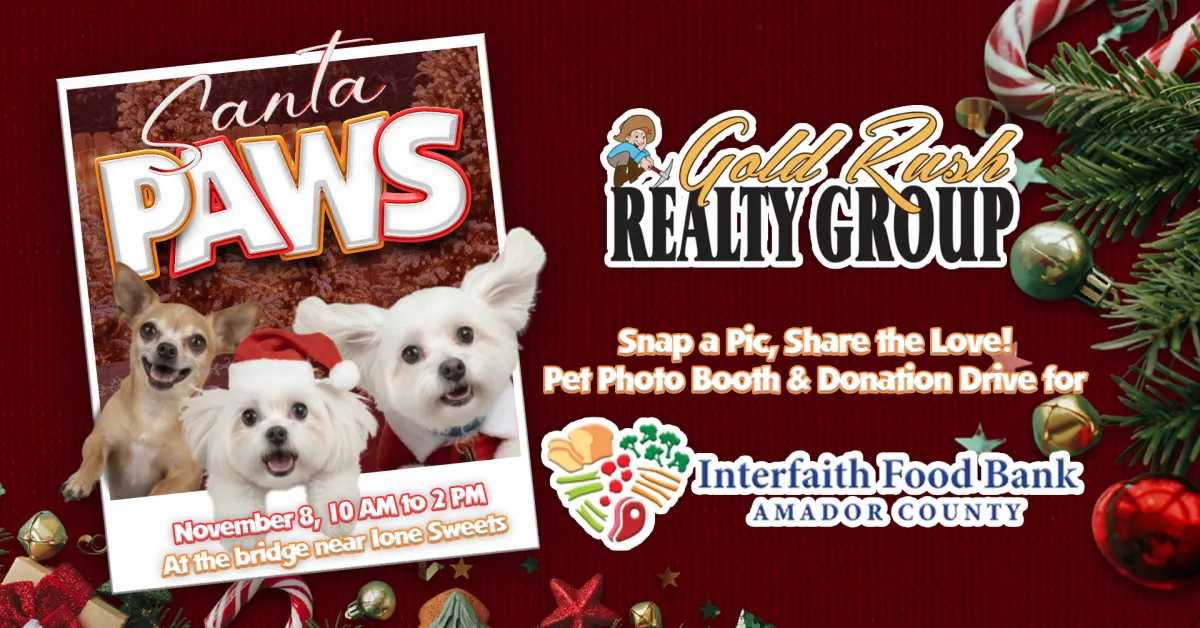 Gold Rush Realty Group is excited to invite you to our Santa Paws Picture Day — a festive photo opportunity for pets and their families. Celebrate the season with a memorable photo of your pet with Santa Paw in a cozy, holiday-themed setting.